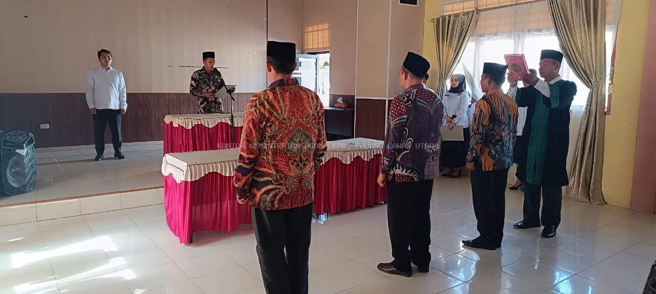 Kepala Kantor Kementerian Agama Kabupaten Padang Lawas Utara, H. Mara Timbul Daulay, S.Pd., MM., melantik dan mengambil sumpah sejumlah pejabat struktural di lingkungan Kemenag Paluta di Aula Kantor Kemenag Paluta.